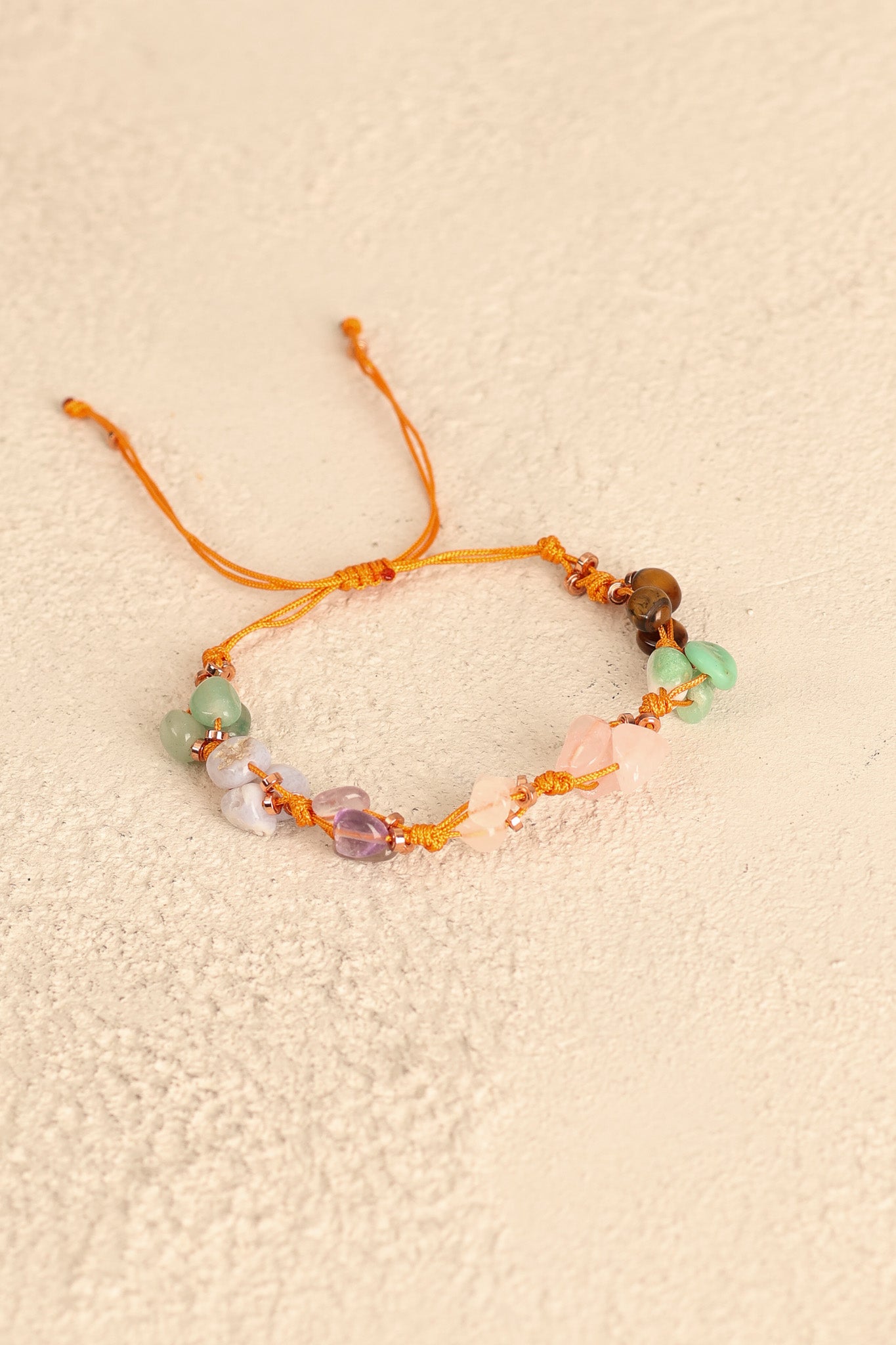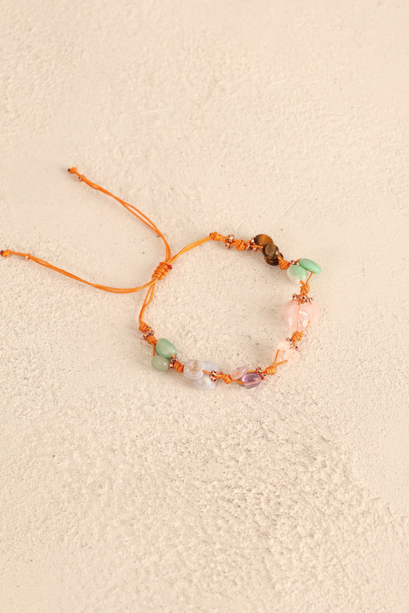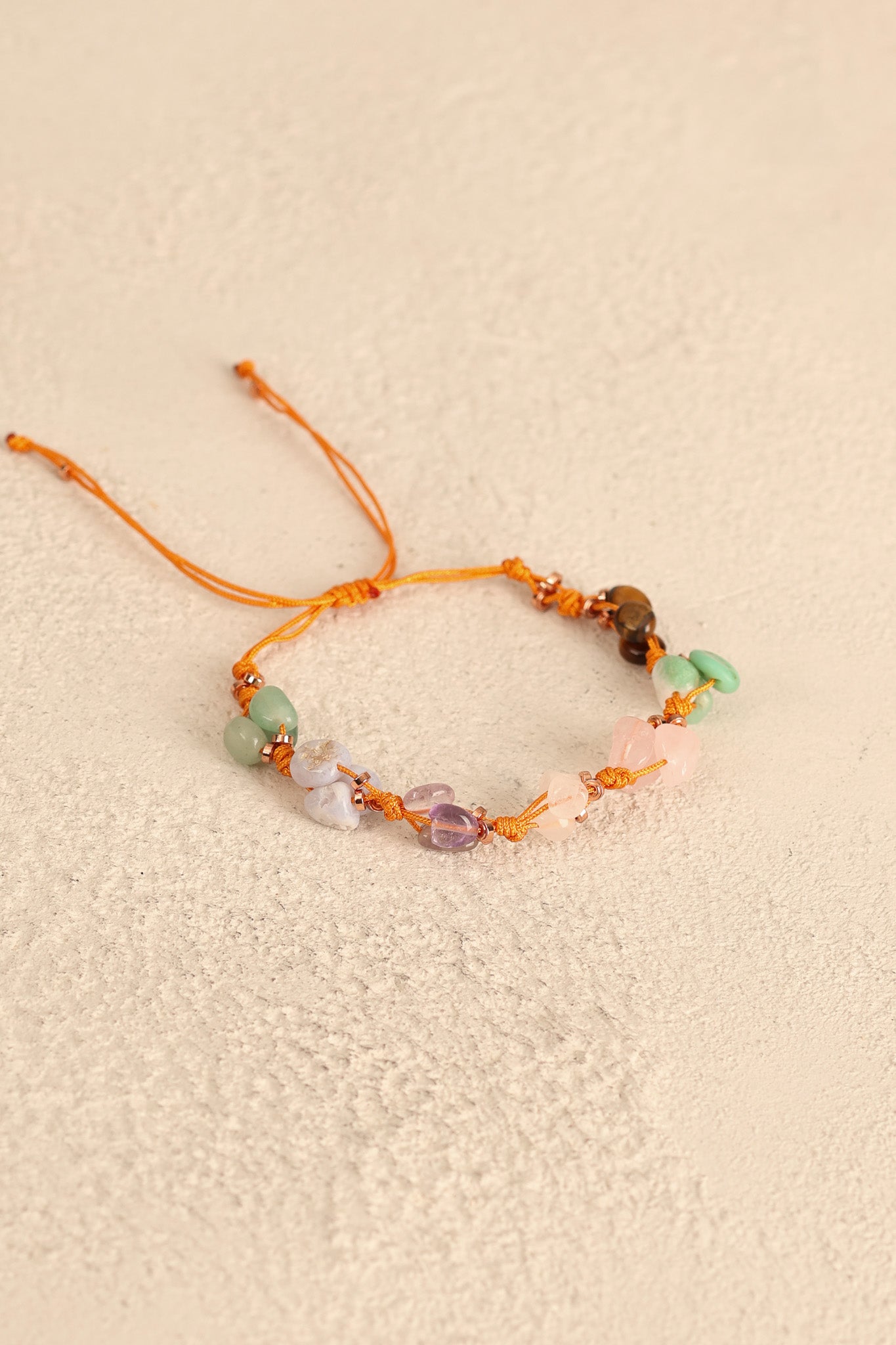 Bu bileklikte kullanılan taşlar, Yengeç burcunun koruma içgüdüsünü, sezgiselliğini ve duygusal dengesini yansıtır. Pastel ve doğal tonlardaki taşlar, hem zarif hem de huzur veren bir görünüm sunar.