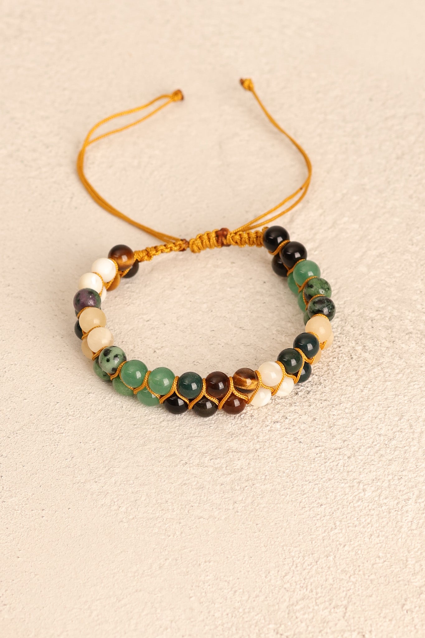Her taş %100 doğaldır; damar yapısı, renk tonu ve parlaklığı farklı olduğundan her bileklik benzersizdir.