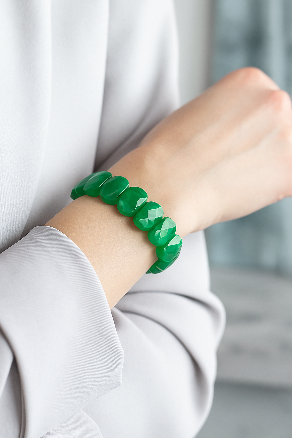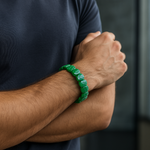 Pirtash kalitesiyle yeşil akik taşının derin, dengeli ve doğal enerjisini bileğinizde taşıyın.