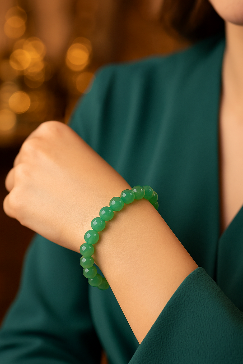 Sertifikalı Yeşil Akik Doğal Taş Bileklik – 8 mm Küre Kesim