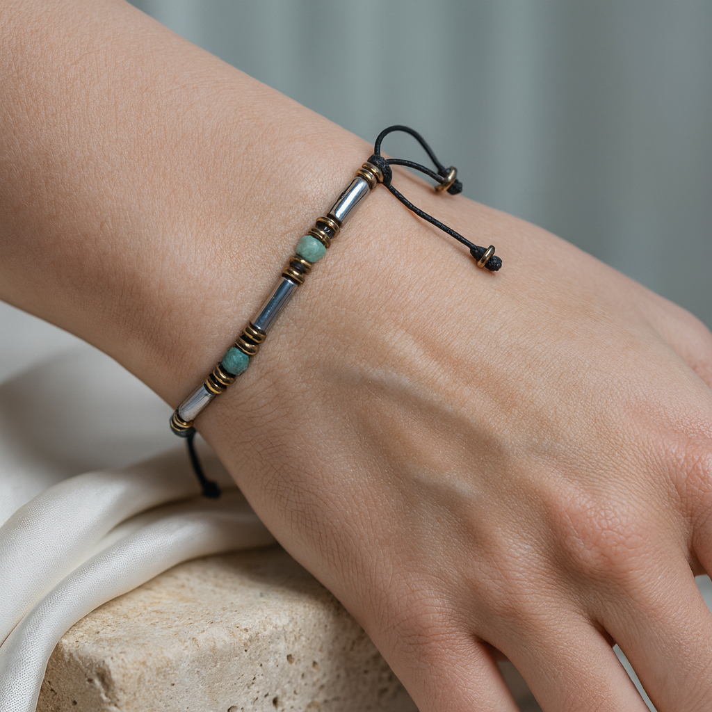Her taş %100 doğaldır; damar yapısı, renk tonu ve parlaklığı sayesinde her bileklik benzersizdir.