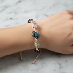 Başak Burcu Doğal Taş Makrome Bileklik – Ametist, Bordo Granat Lal, Jasper, Mavi Apatit, Pembe Kuvars, Yeşil Aventurin, Zebercet (Peridot) – Özel Tasarım