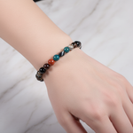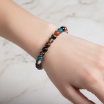 Başak Burcu Doğal Taş Bileklik – Granat Lal, Dumanlı Kuvars, Obsidyen, Jasper, Mavi Apatit & Siyah Göz Akik
