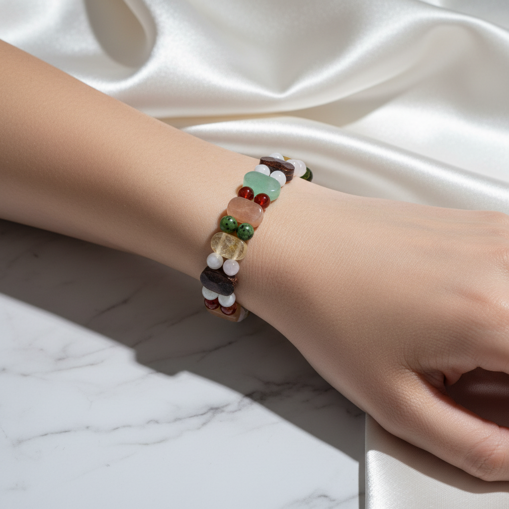 İkizler Burcu Doğal Taş Bileklik – Ay Taşı, Güneş Taşı, Kaplan Gözü, Pembe Kuvars, Sitrin, Aventurin & Yeşim