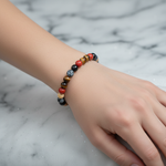 Oğlak Burcu Doğal Taş Bileklik, Oğlak burcu için özel olarak seçilmiş taşların zarif uyumuyla hazırlanmıştır. Dumanlı kuvars, dumortierit, golden obsidyen, jasper ve kaplan gözü taşlarının birleşimi, bilekte güçlü ve estetik bir görünüm sunar. Günlük kullanıma uygun hafif ve konforlu tasarımıyla hem şıklık hem de rahatlık sağlar.