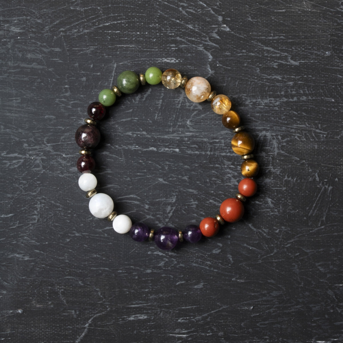 Sezgisel gücü, derinliği ve kararlı yapısıyla bilinen Akrep burcuna özel olarak tasarlanan bu bileklik, burcun karakter özellikleriyle uyumlu seçilmiş doğal taşların uyumlu birleşiminden oluşur.