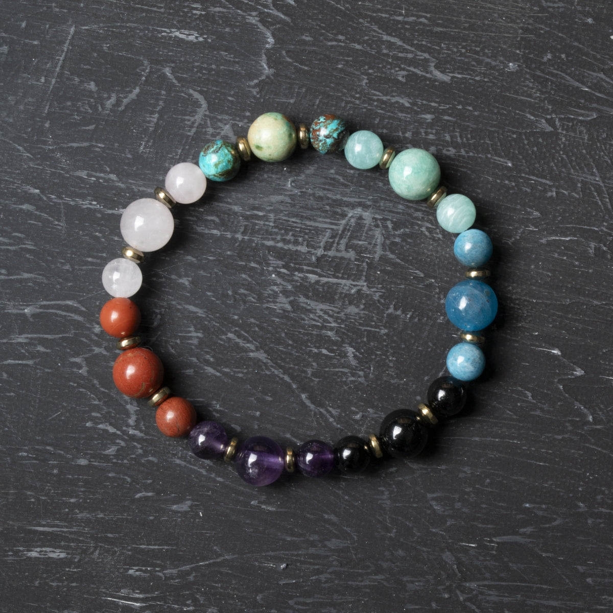 Zihinsel netlik, detaycılık ve içsel düzeniyle öne çıkan Başak burcu için özel olarak tasarlanan bu bileklik, burcun yapısal doğasına uygun yedi farklı doğal taşla hazırlanmıştır.