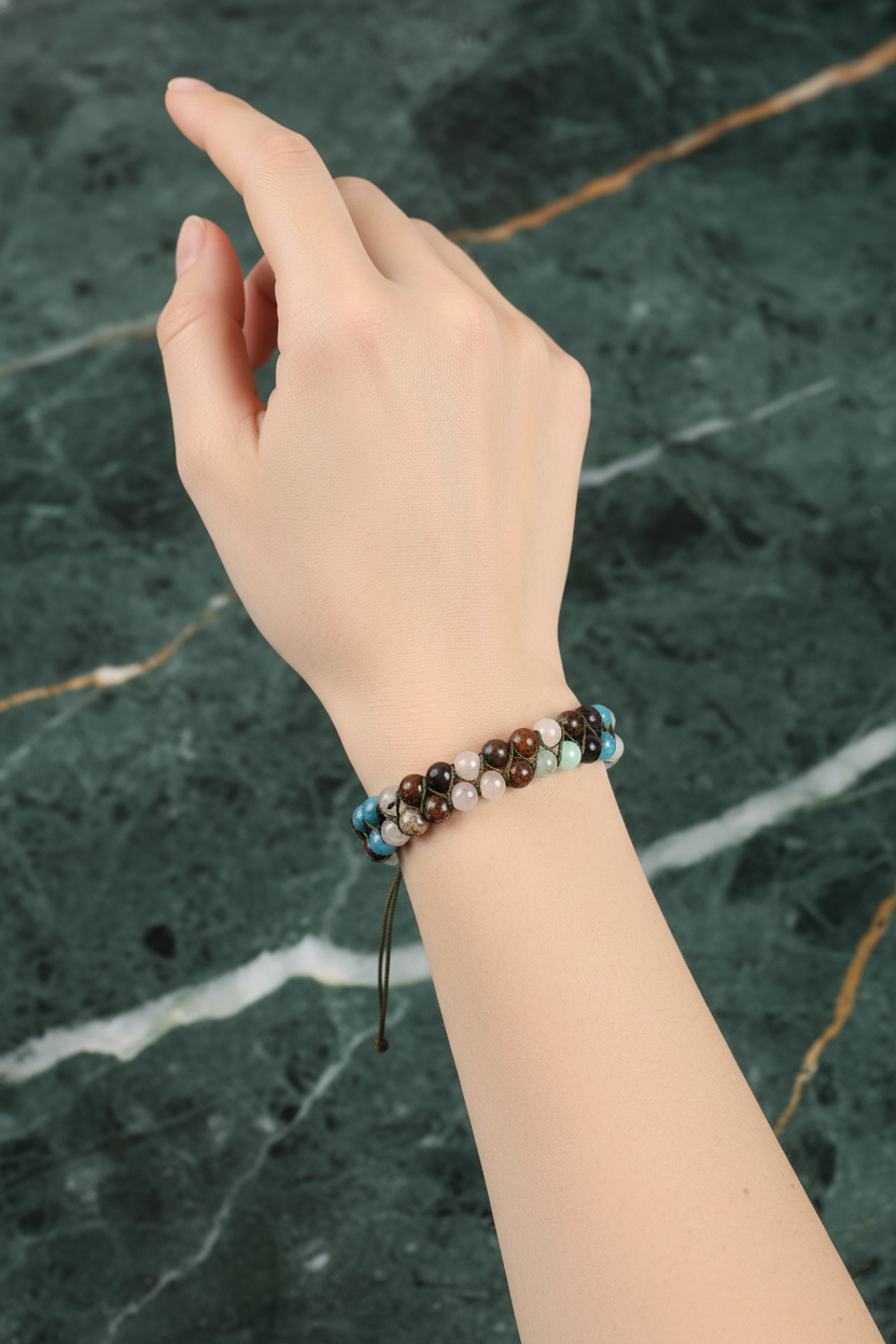Sertifikalı Boğa Burcu Doğal Taş Çift Sıra Makrome Bileklik – 6 mm | Pirtash | Özel Üretim