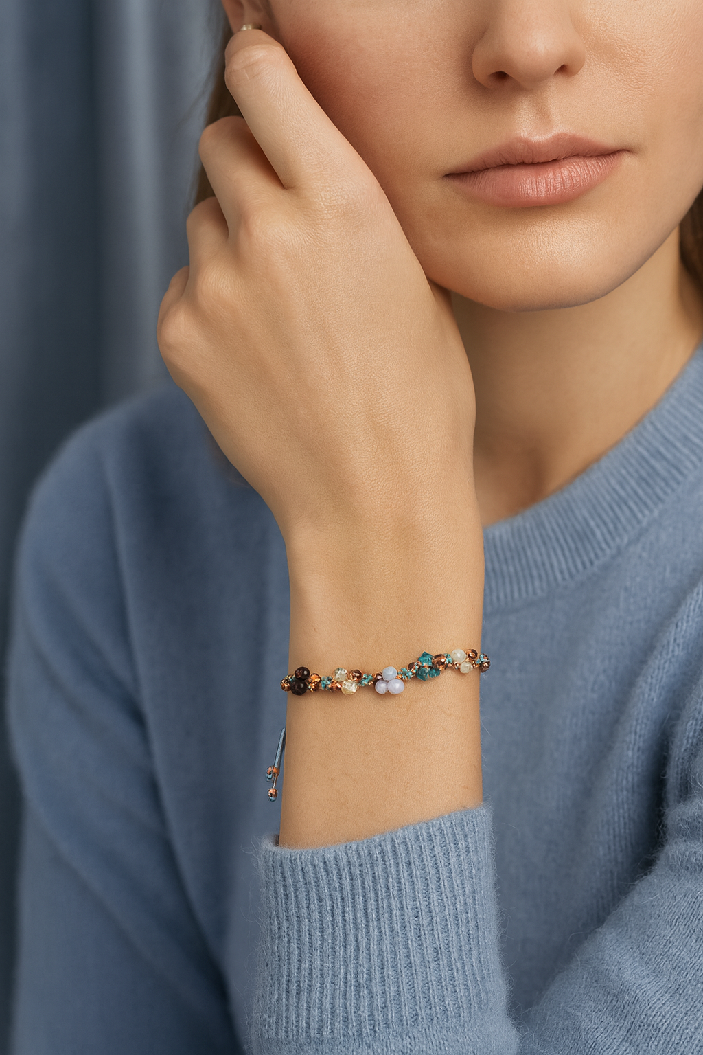 Ayarlanabilir yapısı sayesinde farklı bilek ölçülerine kolayca uyum sağlar. Kadın ve erkek için uygun unisex tasarımıyla hem günlük kombinlerde hem de özel günlerde zarif bir tamamlayıcı olarak öne çıkar.