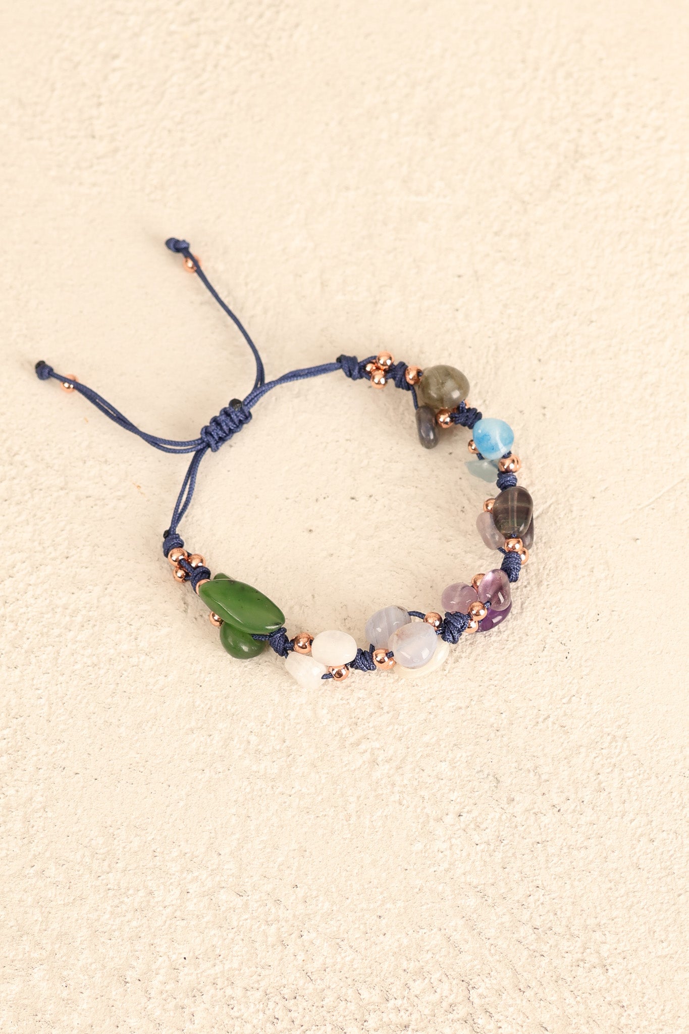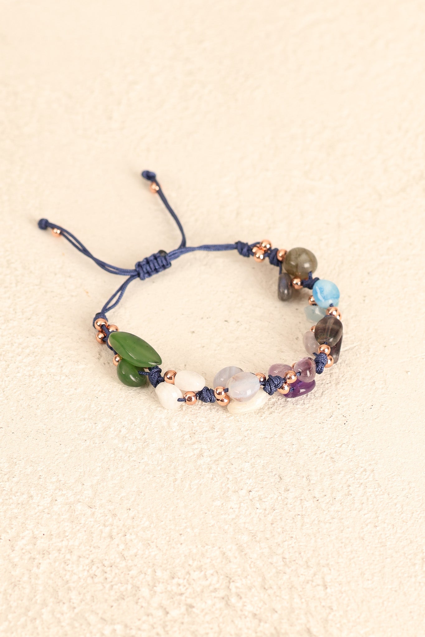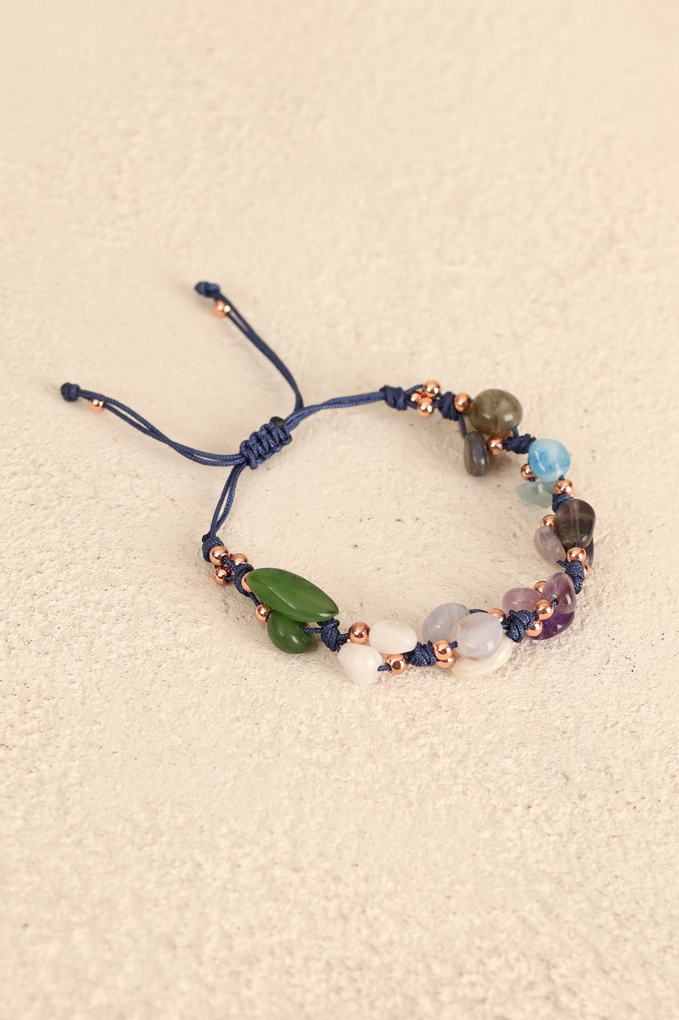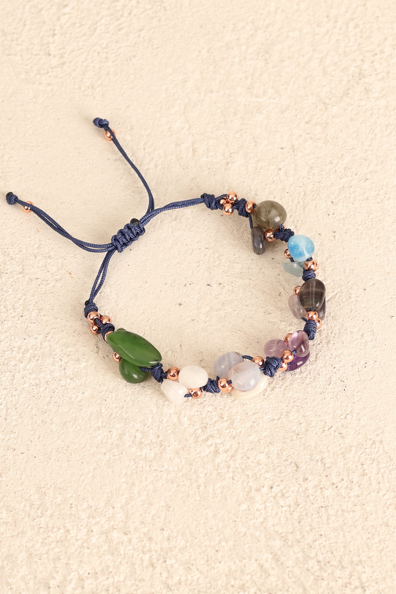 Bu bileklikteki taşlar, Kova burcunun hem entelektüel hem ruhsal yönlerini desteklemek için özenle bir araya getirilmiştir. Doğal taşların renk geçişleri, zarif dokunuşlarla modern bir tasarım sunar.