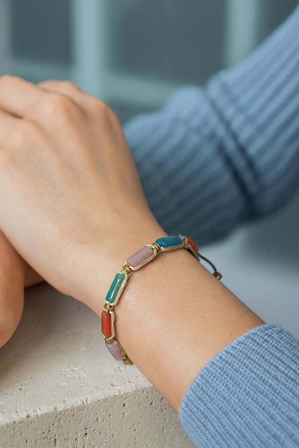 Her taş, kendine özgü damar yapısı, renk tonu ve kristal parlaklığı sayesinde her bilekliği benzersiz kılar.