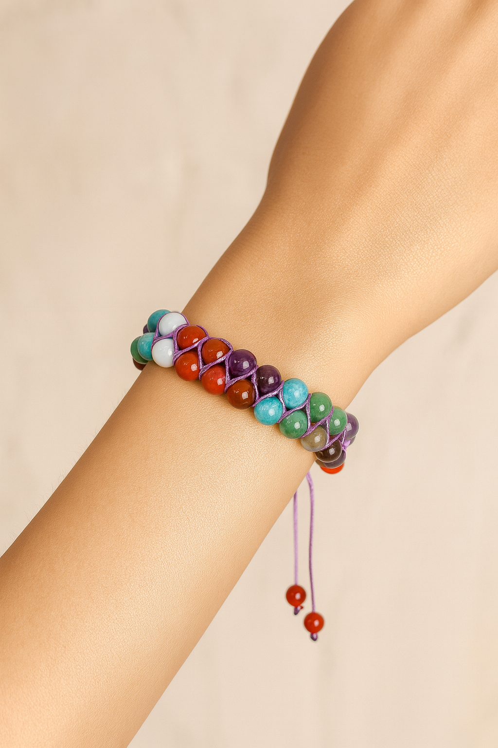 El işçiliğiyle örülmüş makrome bağlama tekniği, bilekliğe hem sağlamlık hem de zarif bir görünüm kazandırır.