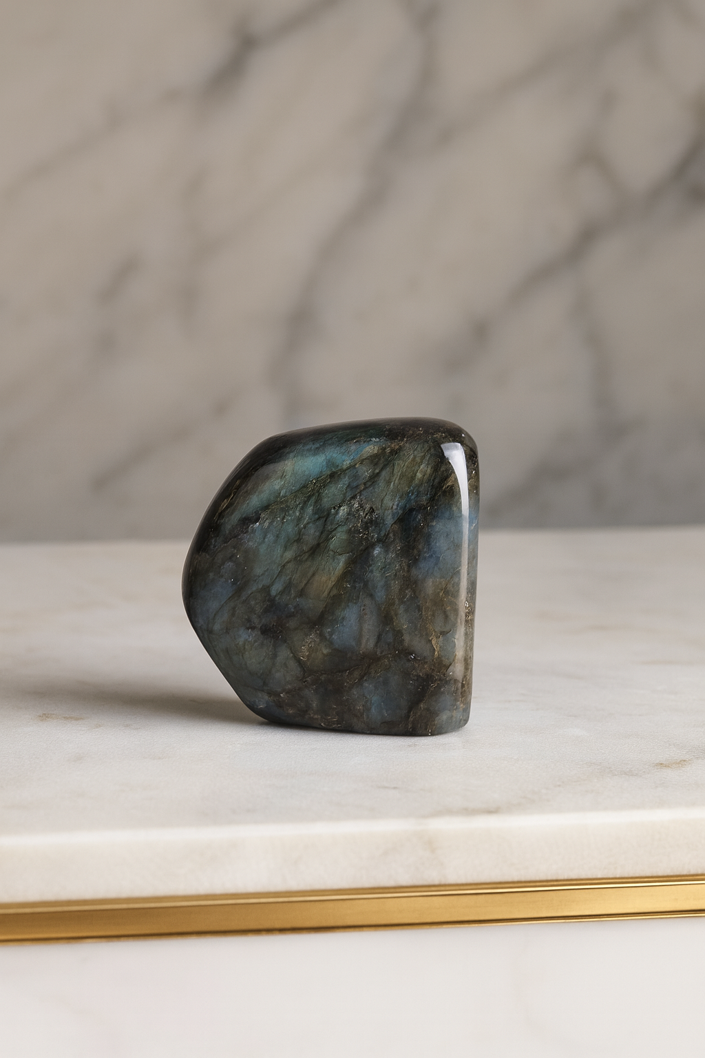 Safnaturel güvencesiyle sunulan bu özel Labradorit parçası, doğanın estetik gücünü yaşam alanlarınıza taşır.