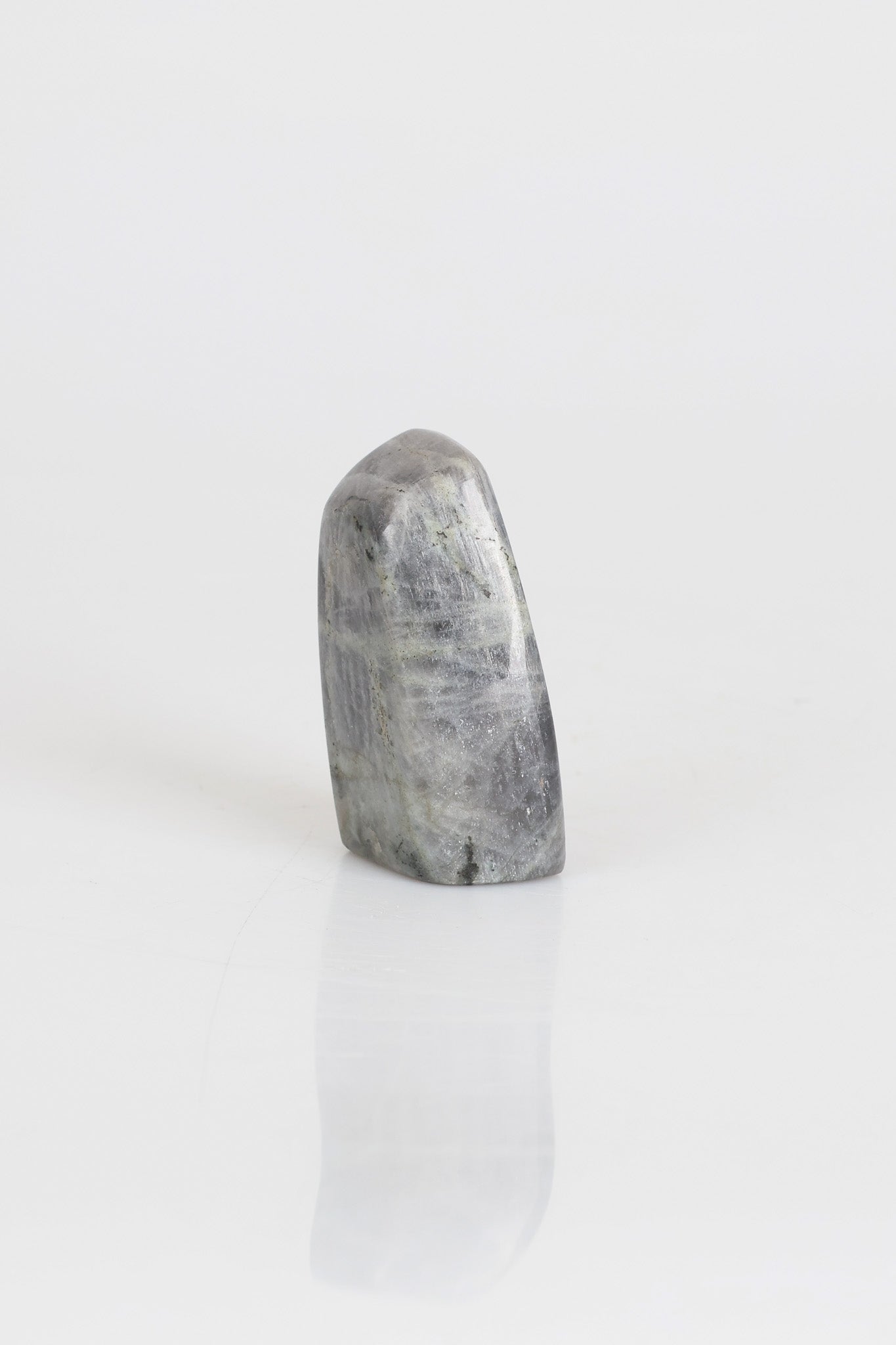 166 gram ağırlığında, 7 cm yüksekliğinde ve 4 cm genişliğinde olan bu Labradorit doğal taş ham parça, mavi, yeşil ve gri tonlarının büyüleyici “labradoresans” yansımalarıyla öne çıkar. Işıkla buluştuğunda ortaya çıkan bu renk oyunları, her açıdan farklı bir görsel derinlik sunar.