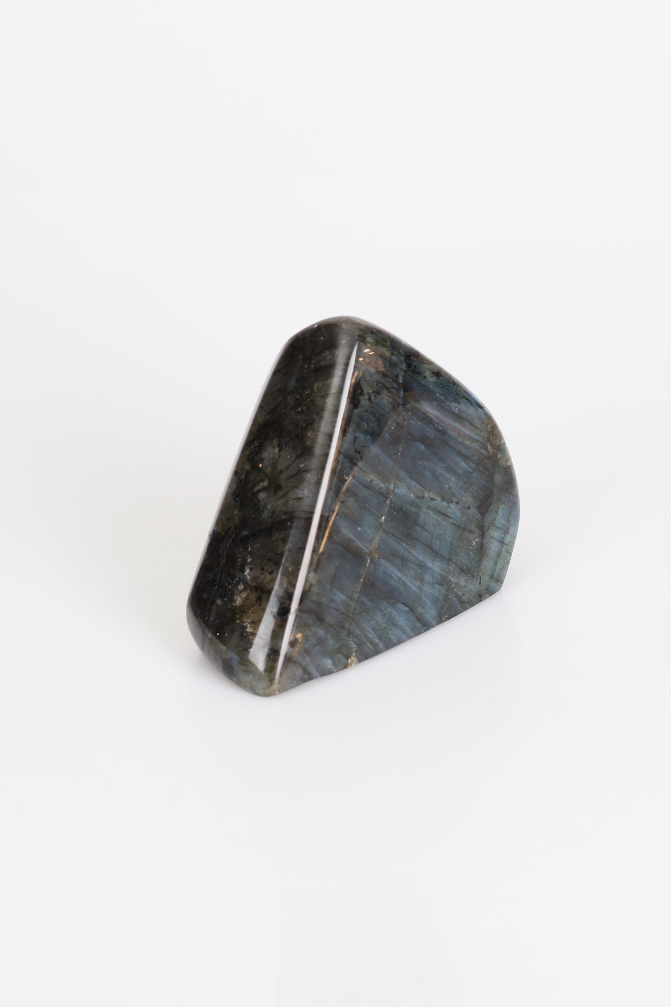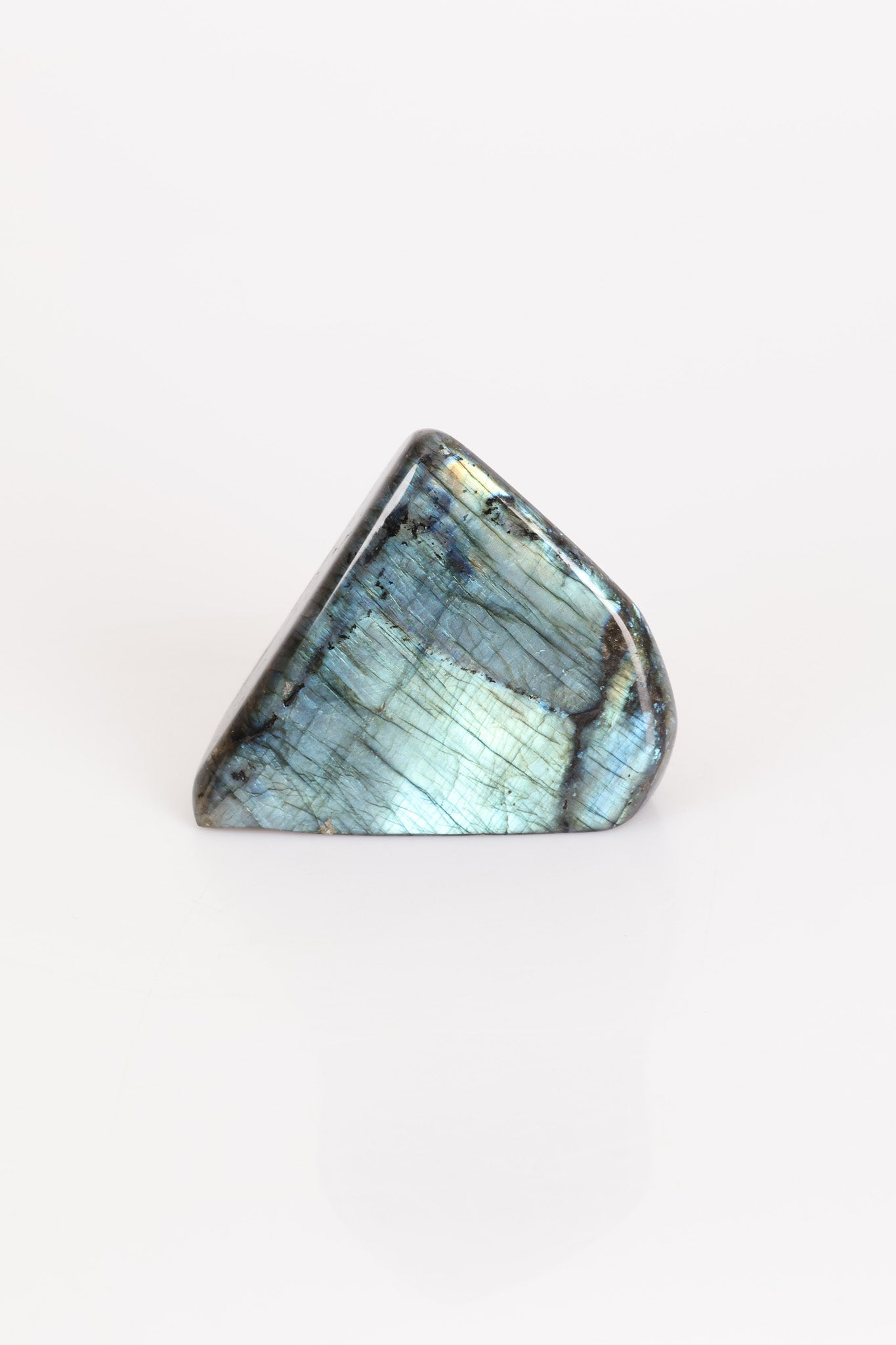 1,006 kg ağırlığında, 11 cm yüksekliğinde ve 13 cm genişliğinde olan bu Labradorit doğal taş ham parça, mavi, yeşil ve gri tonlarının ışıkla buluştuğunda ortaya çıkardığı büyüleyici “labradoresans” yansımalarıyla dikkat çeker. Geniş yüzey yapısı sayesinde renk oyunlarını net bir şekilde sergileyen bu taş, hem estetik hem de koleksiyon değeri açısından özel bir parçadır.