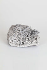 1,096 kg ağırlığında, 13,5 cm yüksekliğinde ve 21 cm genişliğinde olan bu Magnesite doğal taş ham parça, beyaz tonlarının arasında yer alan gri damar yapısıyla dikkat çeker. Doğal formunu koruyan bu büyük boy ham parça, hem koleksiyon değeri hem de dekoratif etkisiyle öne çıkar.