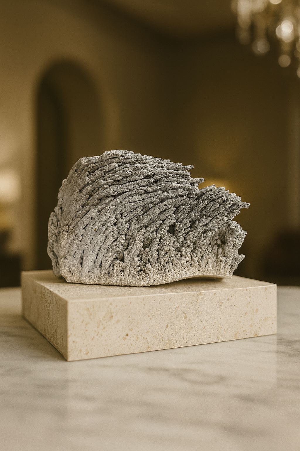 Magnesite taşı, doğal ve sade estetiğiyle lüks iç mekan dekorasyonları, doğal taş koleksiyonları ve mineraloji tutkunları için ideal bir seçimdir. Bu özel parça, geniş yüzey yapısı sayesinde vitrinlerde, masaüstünde veya özel sergileme alanlarında dikkat çekici bir şekilde sergilenebilir.