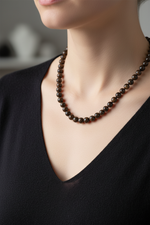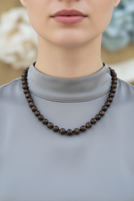 Bronzit taşının kahverengi ve altın yansımalarını öne çıkaran bu 8 mm düğümlü kolye; koleksiyonuna modern, zarif ve güçlü bir parça eklemek isteyenler için ideal seçimdir.