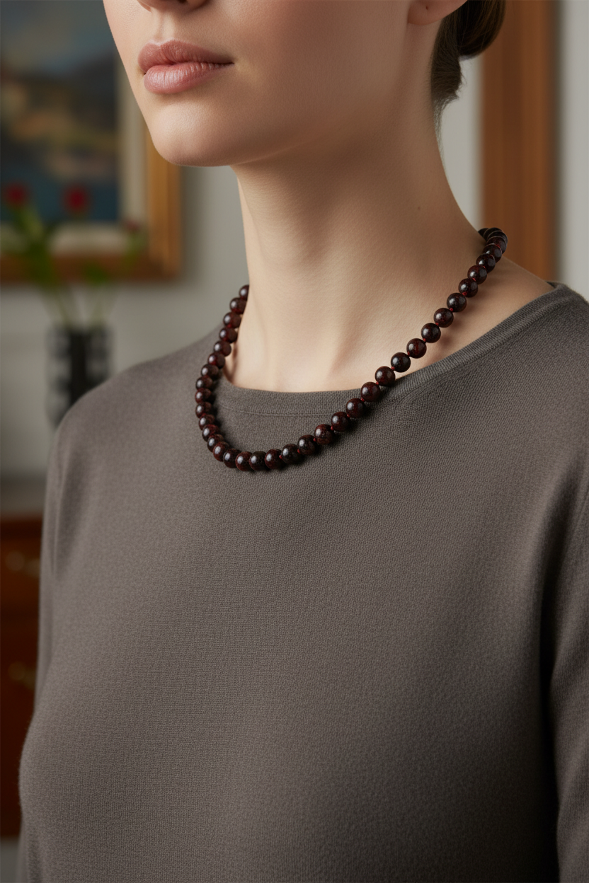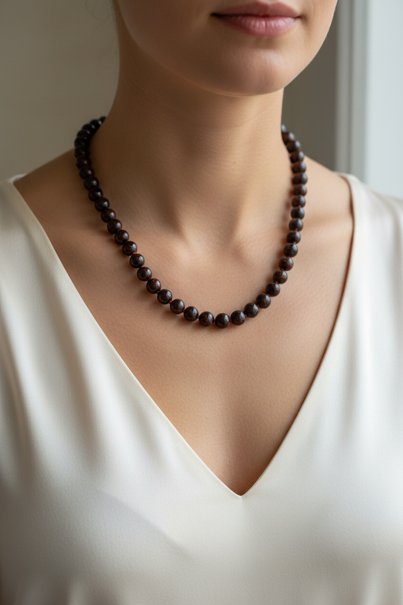 Dragon Jasper Doğal Taş Kolye – 8 mm Düğümlü, Unisex Tasarım