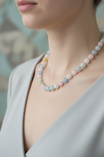 Heliodor taşının parlak sarı tonları, 8 mm boyutunda tek tek düğümlenerek şık bir kolye formunda tasarlandı. Doğal taşın ışığı yansıtan berrak yapısı, ürüne hem enerjik hem de sofistike bir görünüm kazandırır. Düğümlü dizim tekniği taşların doğal güzelliğini öne çıkarırken, aynı zamanda ürüne sağlamlık ve uzun ömürlü kullanım sağlar.