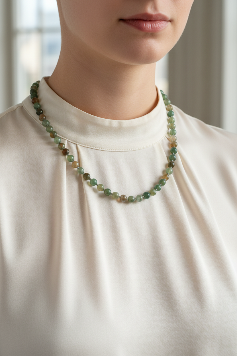 Hint Akiği 6 mm Düğümlü Doğal Taş Kolye – Unisex El İşçiliği