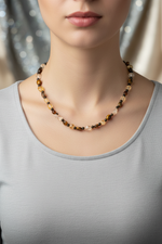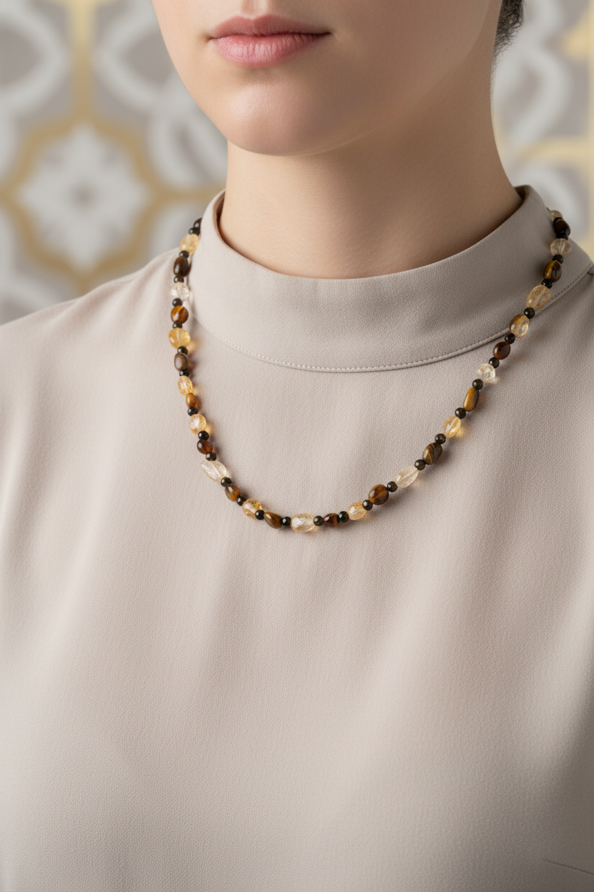 Kaplan Gözü, Sitrin & Obsidyen Doğal Taş Kolye – Özel Tasarım