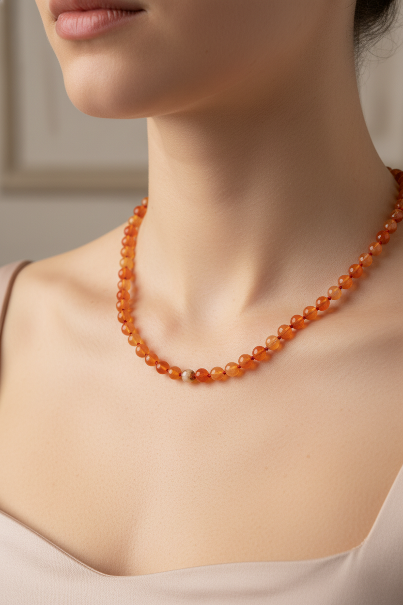 Madagaskar Akiği 6 mm Düğümlü Doğal Taş Kolye – Unisex El İşçiliği