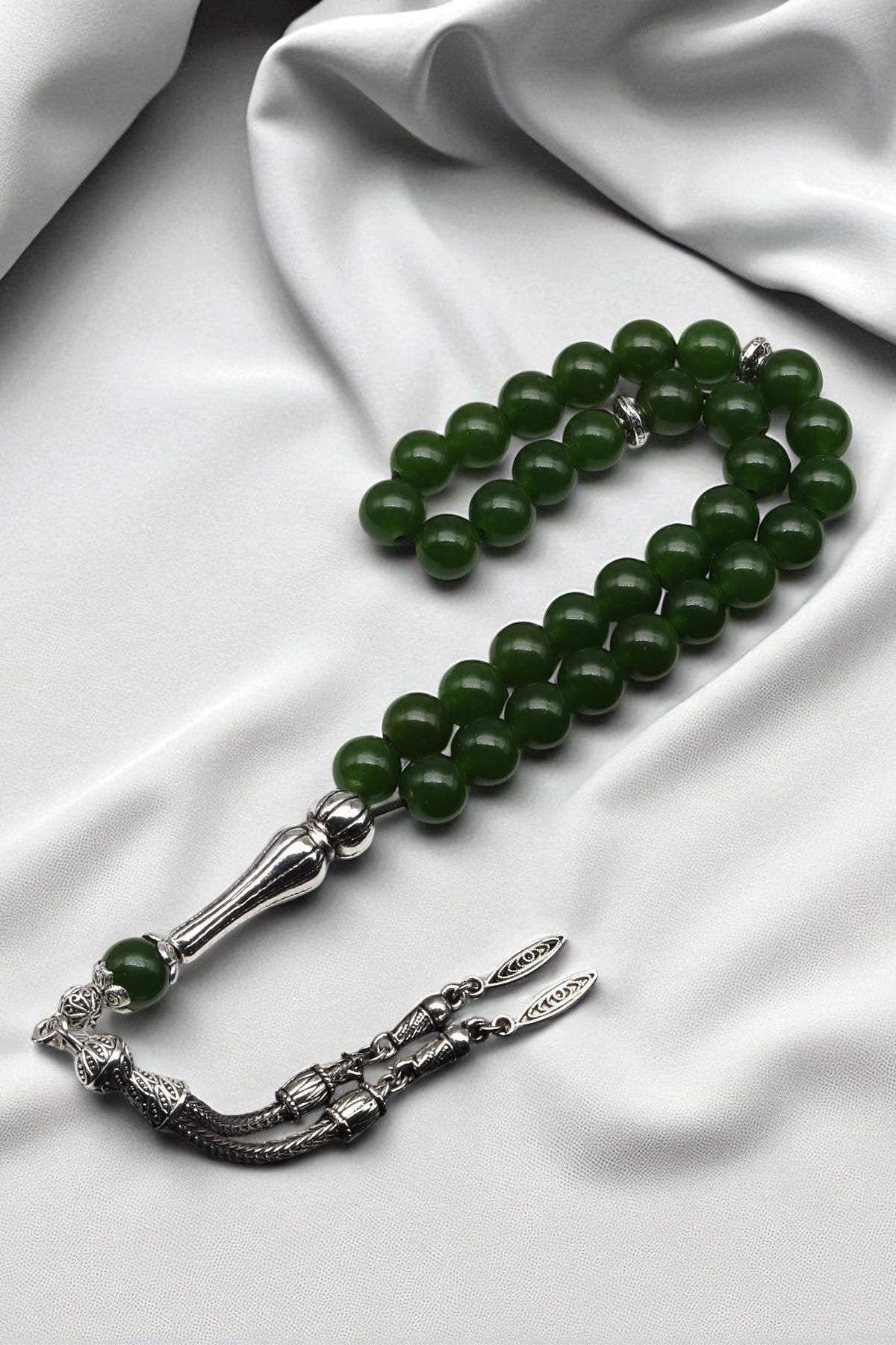 Sertifikalı Tayvan Yeşim Doğal Taş Tesbih – 8 mm Küre Kesim | Pirtash | Özel Üretim