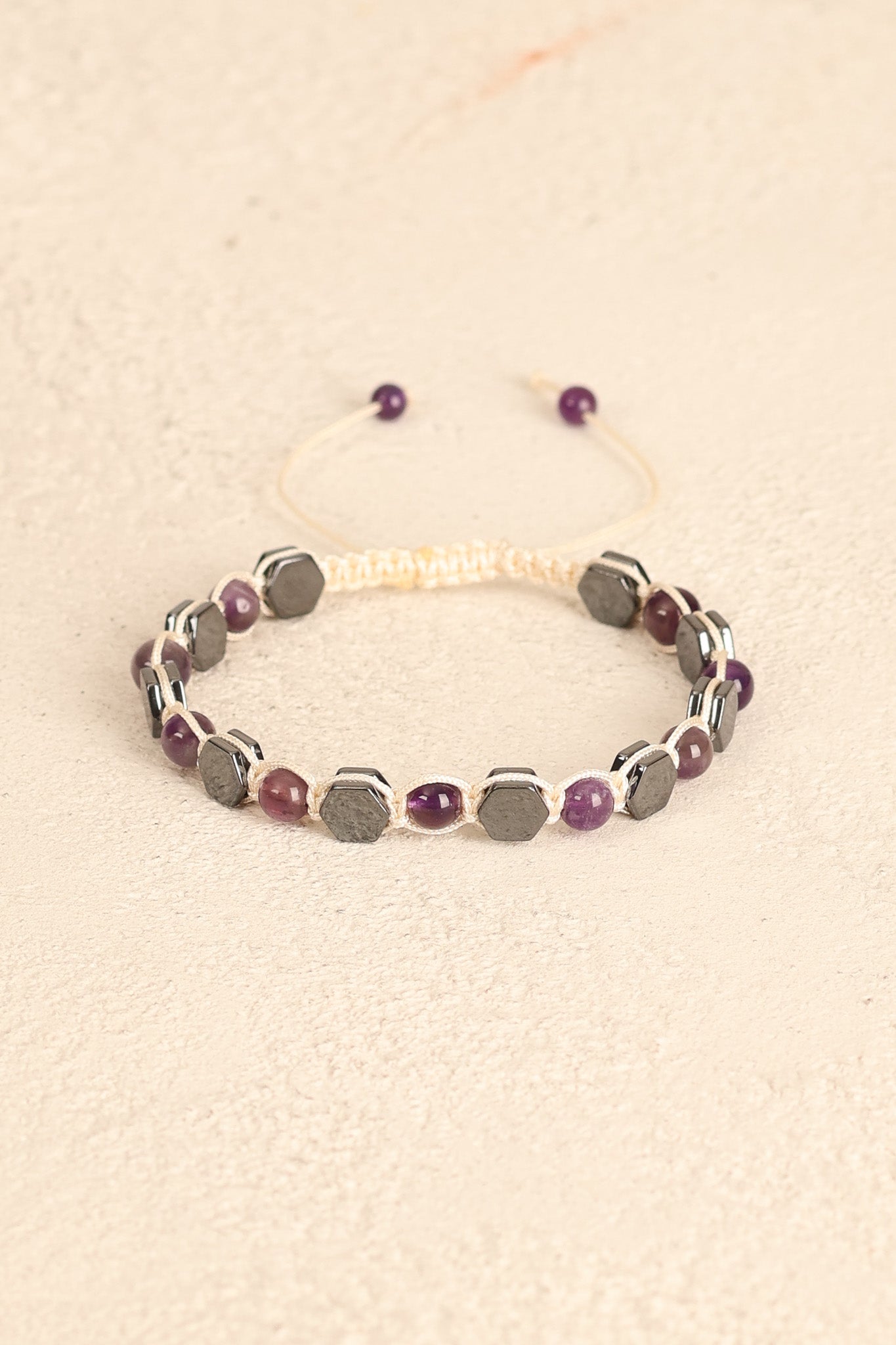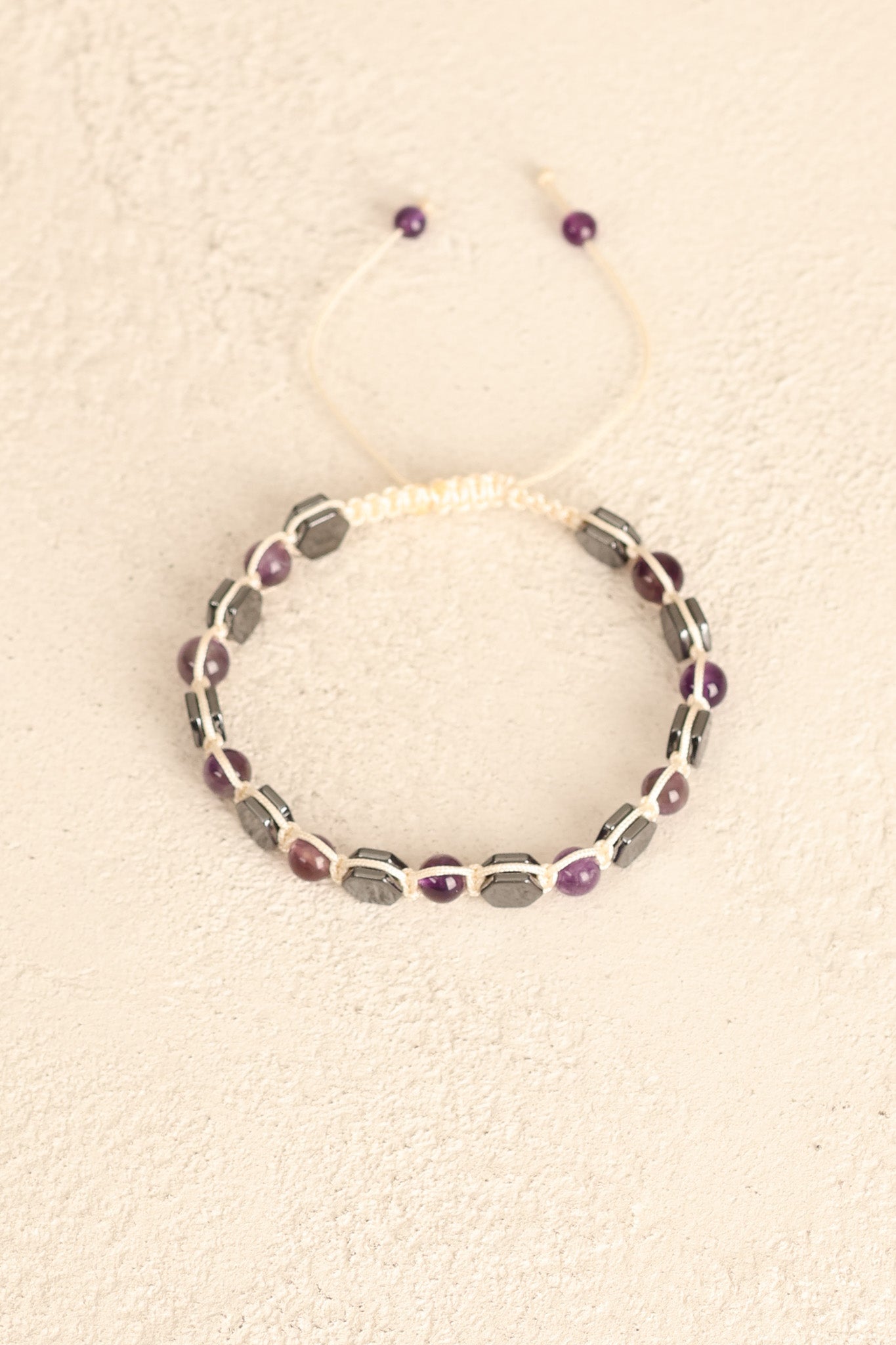 Ametist & Hematit Doğal Taş Makrome Bileklik – Pirtash