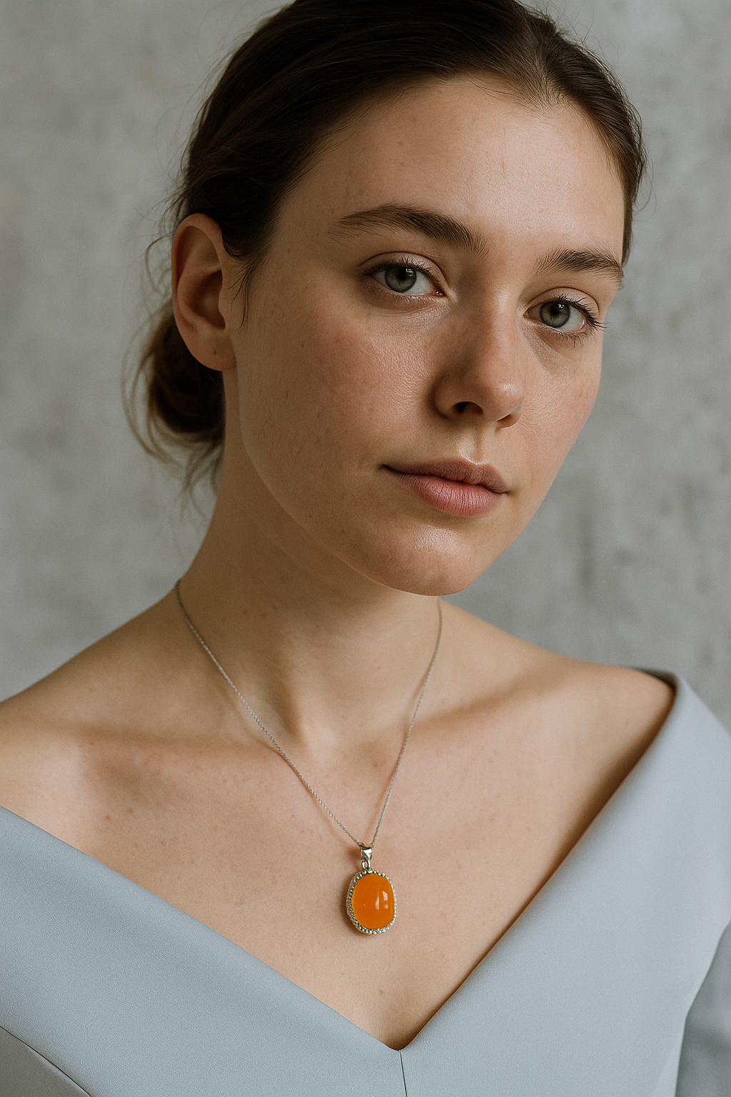 Pirtash kalitesiyle akik taşının güçlü ve doğal enerjisini 925 ayar gümüş zarafetiyle boynunuzda taşıyın.