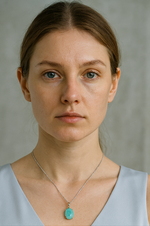Su yeşili ile açık mavi tonları arasında doğal geçişlere sahip olan amazonit taşı, bu zarif kolyede yüksek kaliteli gümüş detaylarla buluşuyor. Taşın huzur verici rengi ve mat dokusu, boyunda sade ama dikkat çekici bir görünüm sunar.