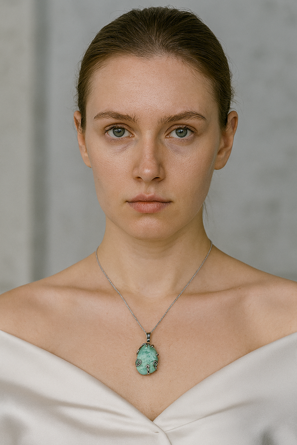 Amazonit taşı, tarih boyunca içsel dengeyi ve sakinliği temsil eden değerli taşlar arasında yer alır. Gümüş renkli zarif tasarımı sayesinde hem gündelik kombinlerde hem özel anlarda doğal bir şıklık sunar.