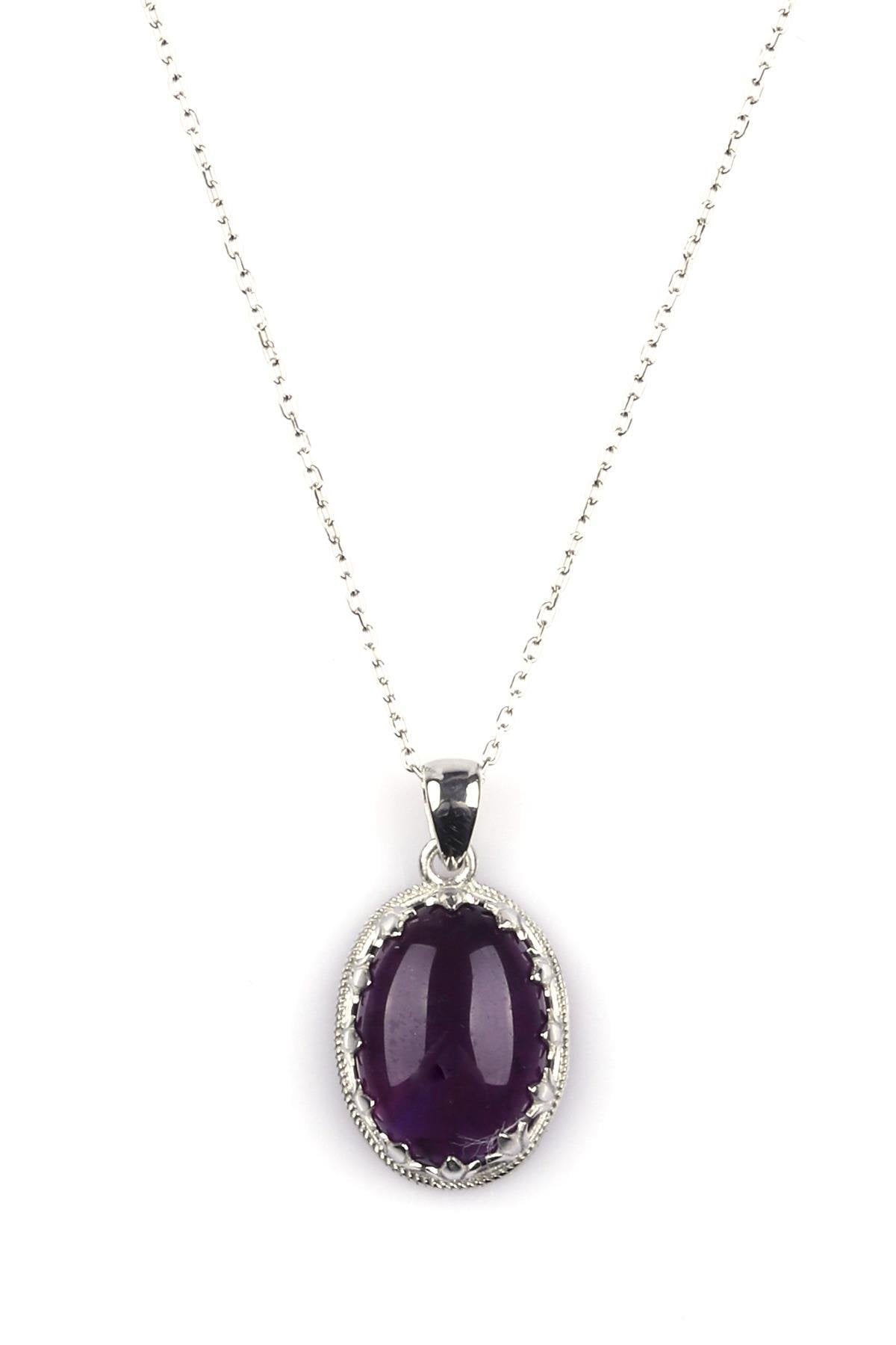 Pirtash kalitesiyle ametist taşının asil ve huzur verici enerjisini 925 ayar gümüş şıklığında boynunuzda taşıyın.