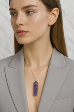 Pirtash kalitesiyle ametist taşının sade, doğal ve güçlü enerjisini boynunuzda taşıyın.