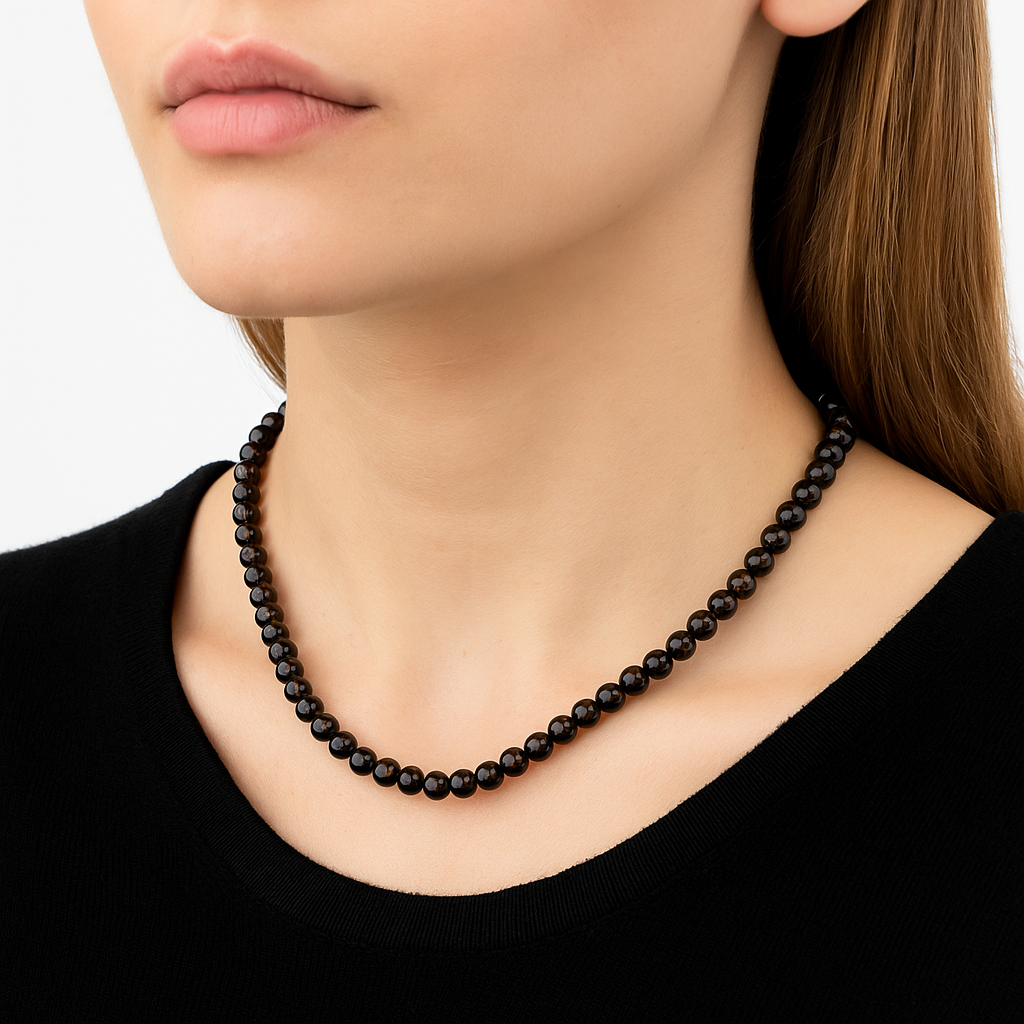 Sertifikalı Dumanlı Kuvars 6 mm Dizi Doğal Taş Kolye