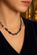 Kova burcunun ruhsal derinliği ve özgün karakteri için özenle seçilmiş yedi farklı doğal taşın birleşimiyle oluşturulan bu özel kolye, hem görsel zarafet hem de burç temelli taş uyumu sunar. Akuamarin, Ametist, Ay Taşı, Kalsedon, Labradorit, Mor Florit ve Yeşim taşları, el yapımı ayarlanabilir makrome ile bir araya getirilmiştir.