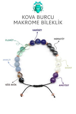 Sertifikalı Kova Burcu Doğal Taş Makrome Bileklik