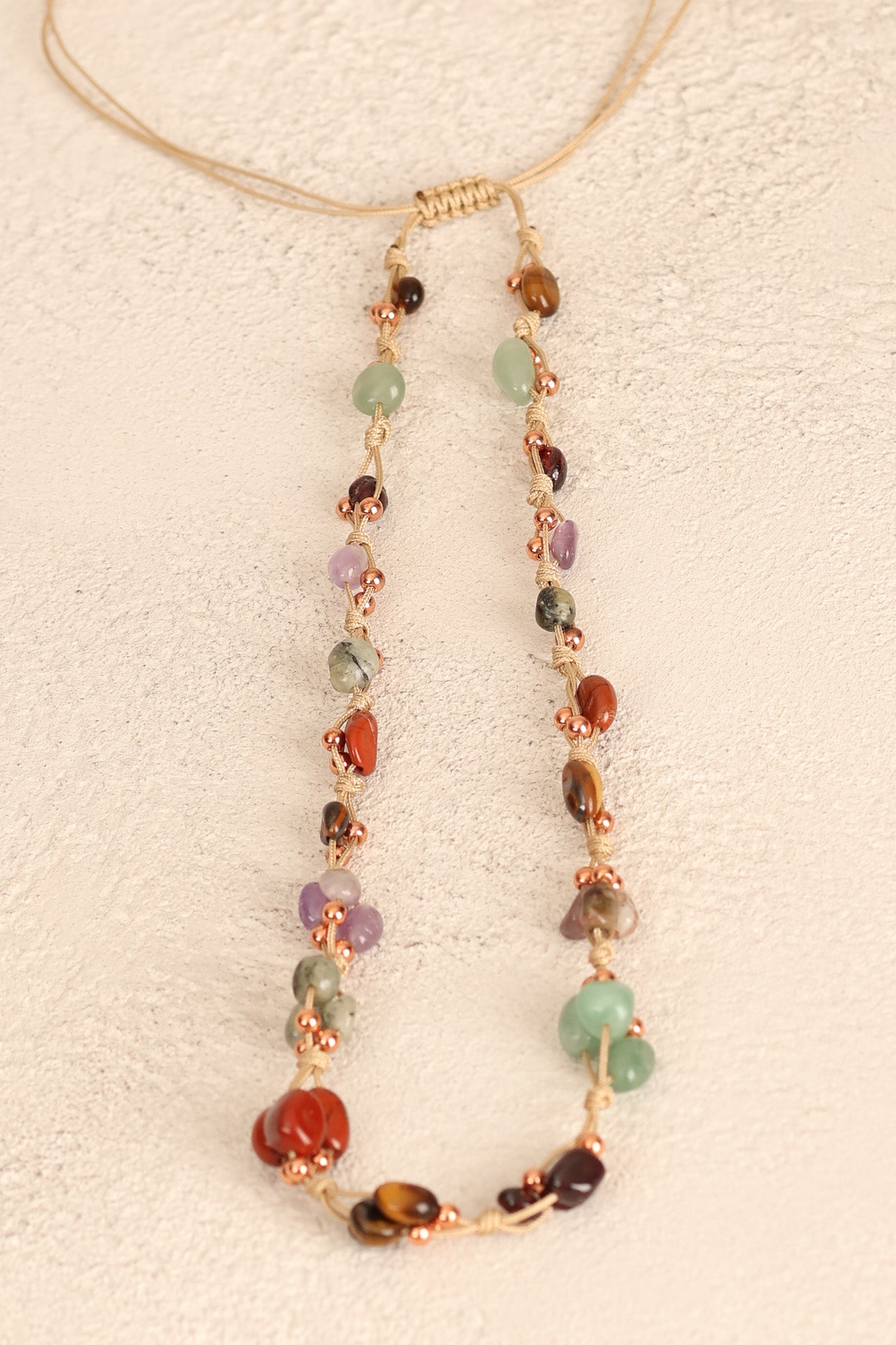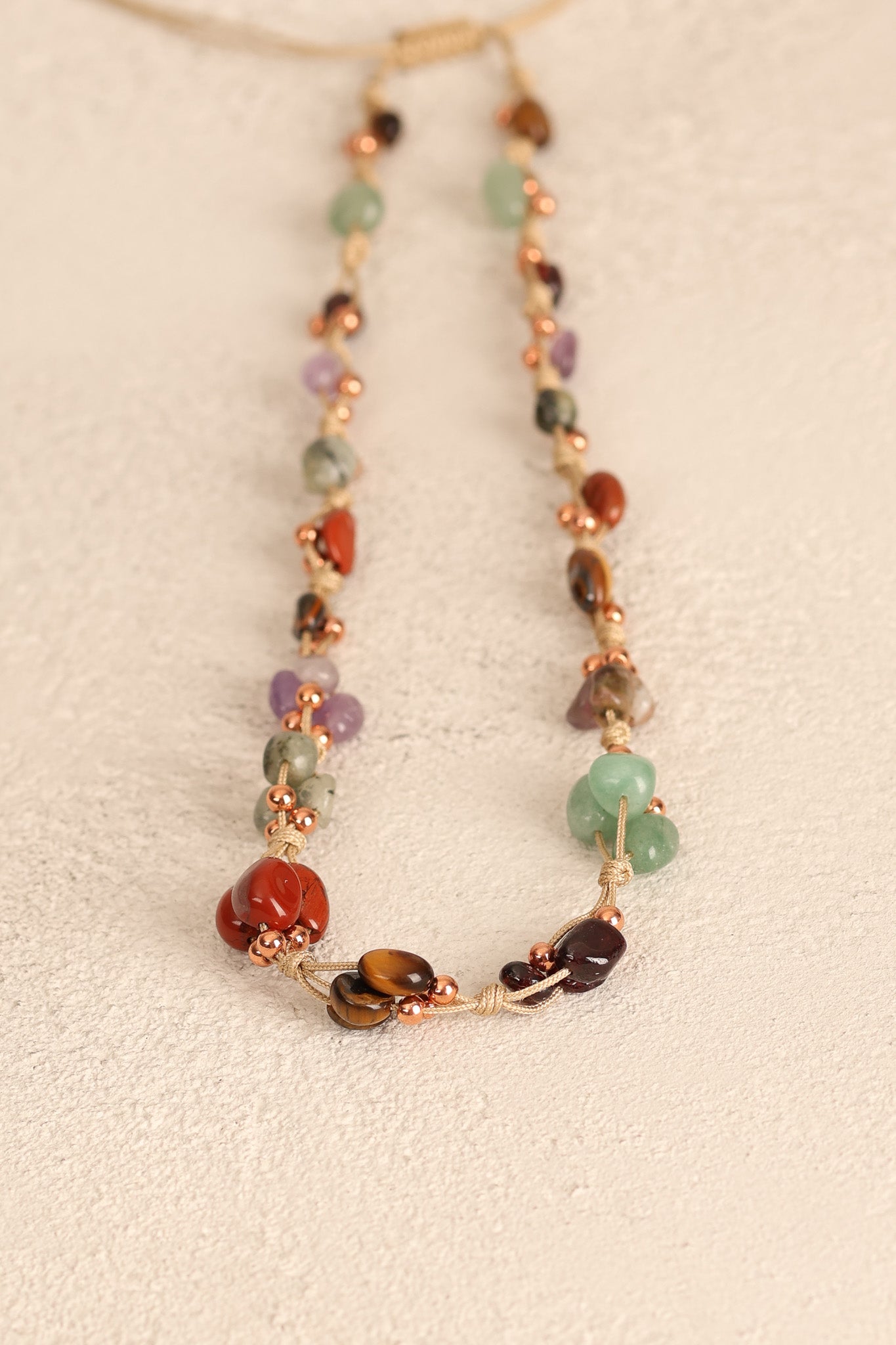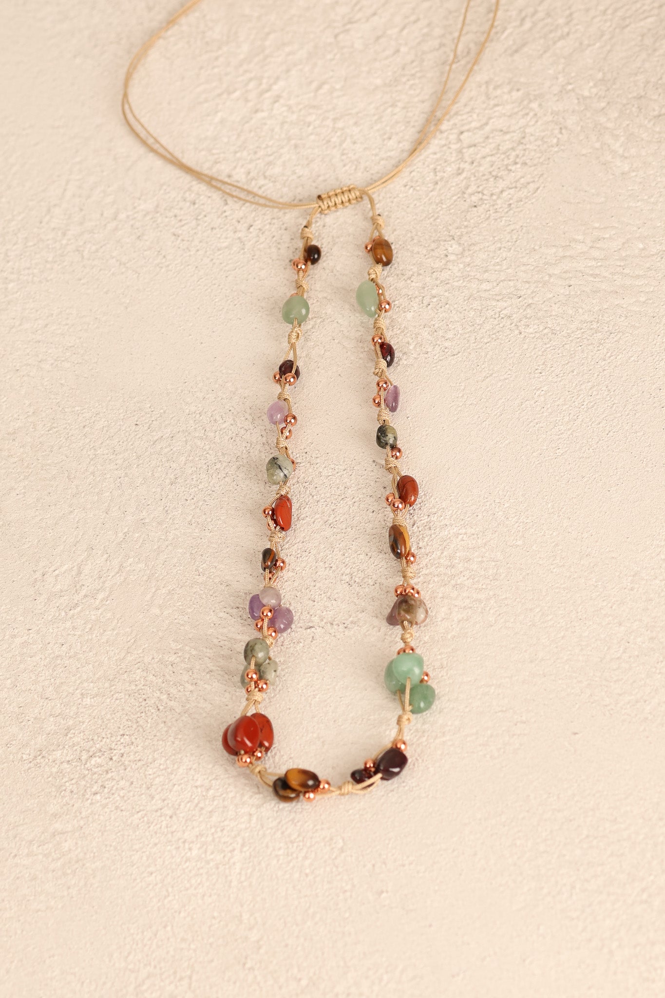 El işçiliğiyle örülmüş ayarlanabilir makrome tasarım, farklı boyun ölçülerine kolayca uyum sağlar. Hem günlük kullanımlarda hem de özel anlarda şık bir tamamlayıcıdır.