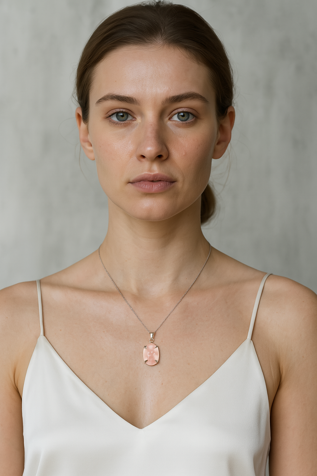 Pembe kuvars, tarih boyunca sevgi, şefkat ve içsel dengeyle özdeşleşmiş bir taştır. Gümüşle buluştuğunda modern ve zamansız bir takıya dönüşür. Günlük kombinlerde zarif bir tamamlayıcı, özel anlarda ise anlam yüklü bir detay olarak öne çıkar.