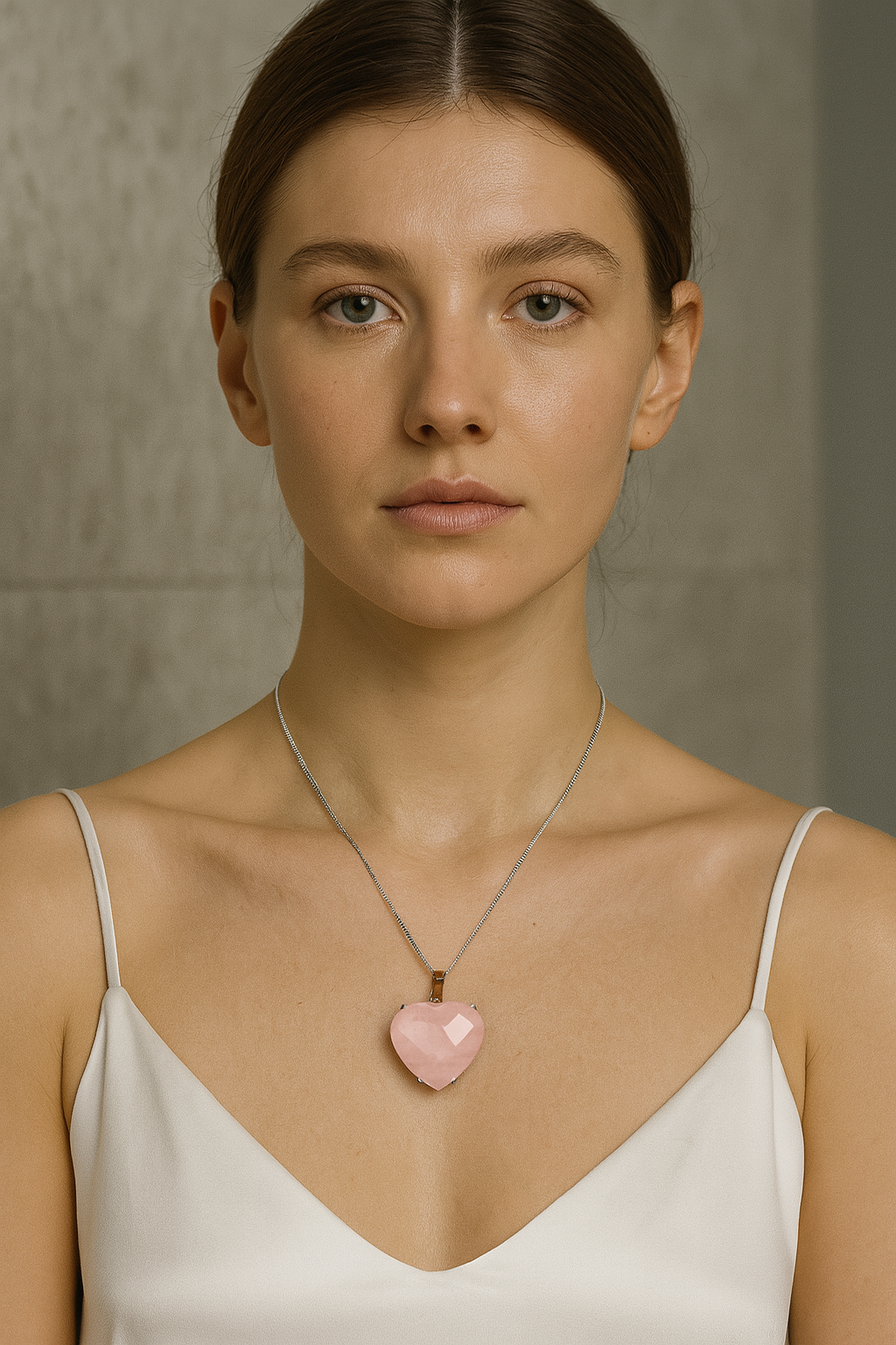Pembe kuvars taşı, tarih boyunca sevgi, şefkat ve duygusal dengeyi simgelemiştir. Gümüş rengiyle tamamlanan bu zarif model, hem gündelik kombinlerde hem de özel günlerde anlam yüklü ve şık bir tamamlayıcıdır.