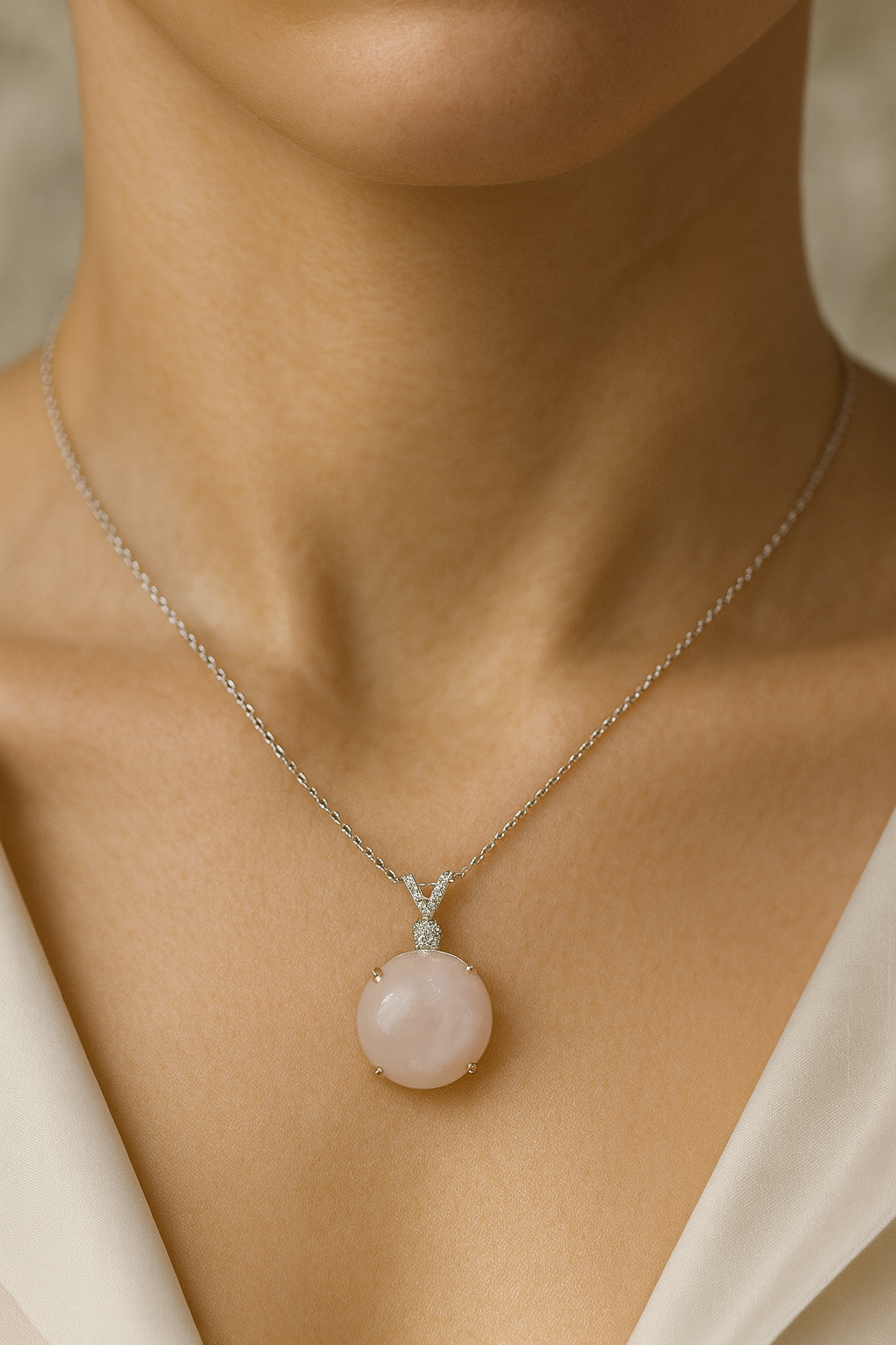 Pirtash ile pembe kuvars taşının doğal zarafetini, kaliteli işçilik ve bilimsel güvenceyle boynunuzda taşıyın.
