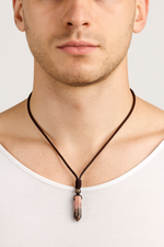 Rodonit taşı; sakin pembe tonları ile dikkat çekerken, üzerindeki doğal siyah damarlar her taşın eşsizliğini ortaya koyar. Kolye ucu olarak tek başına kullanılabileceği gibi dilerseniz deri, çelik ya da ip kolyelerle tamamlanarak farklı stillerde takılabilir.