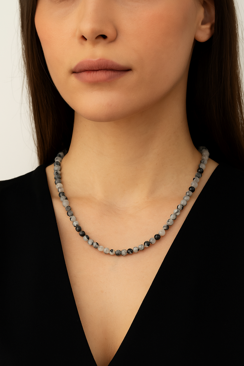 Sertifikalı Rutilli Kuvars 6 mm Dizi Doğal Taş Kolye