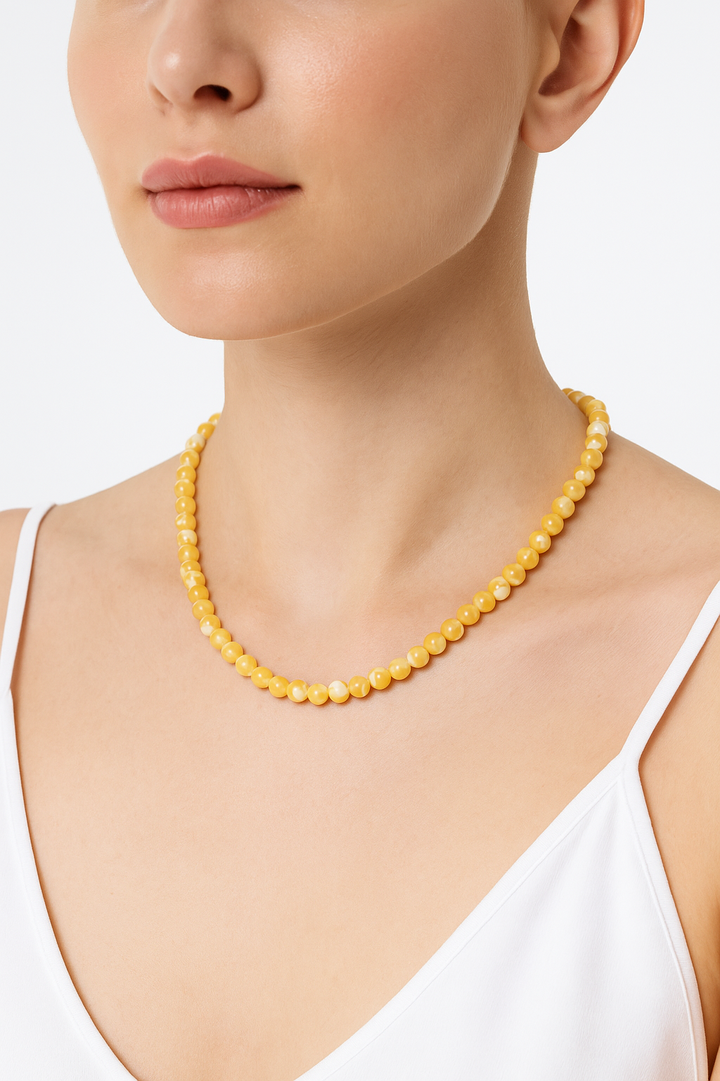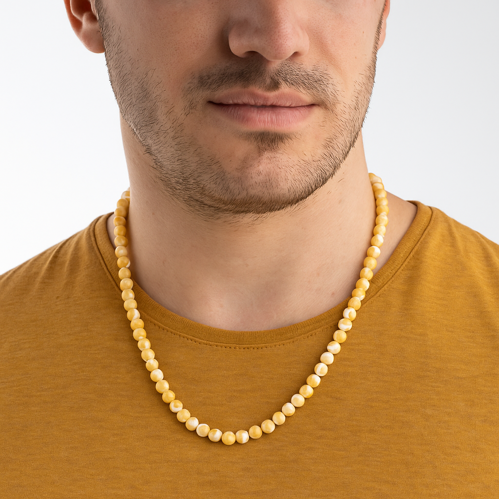 IGSL Sertifikalı Sedef 6 mm Dizi Doğal Taş Kolye