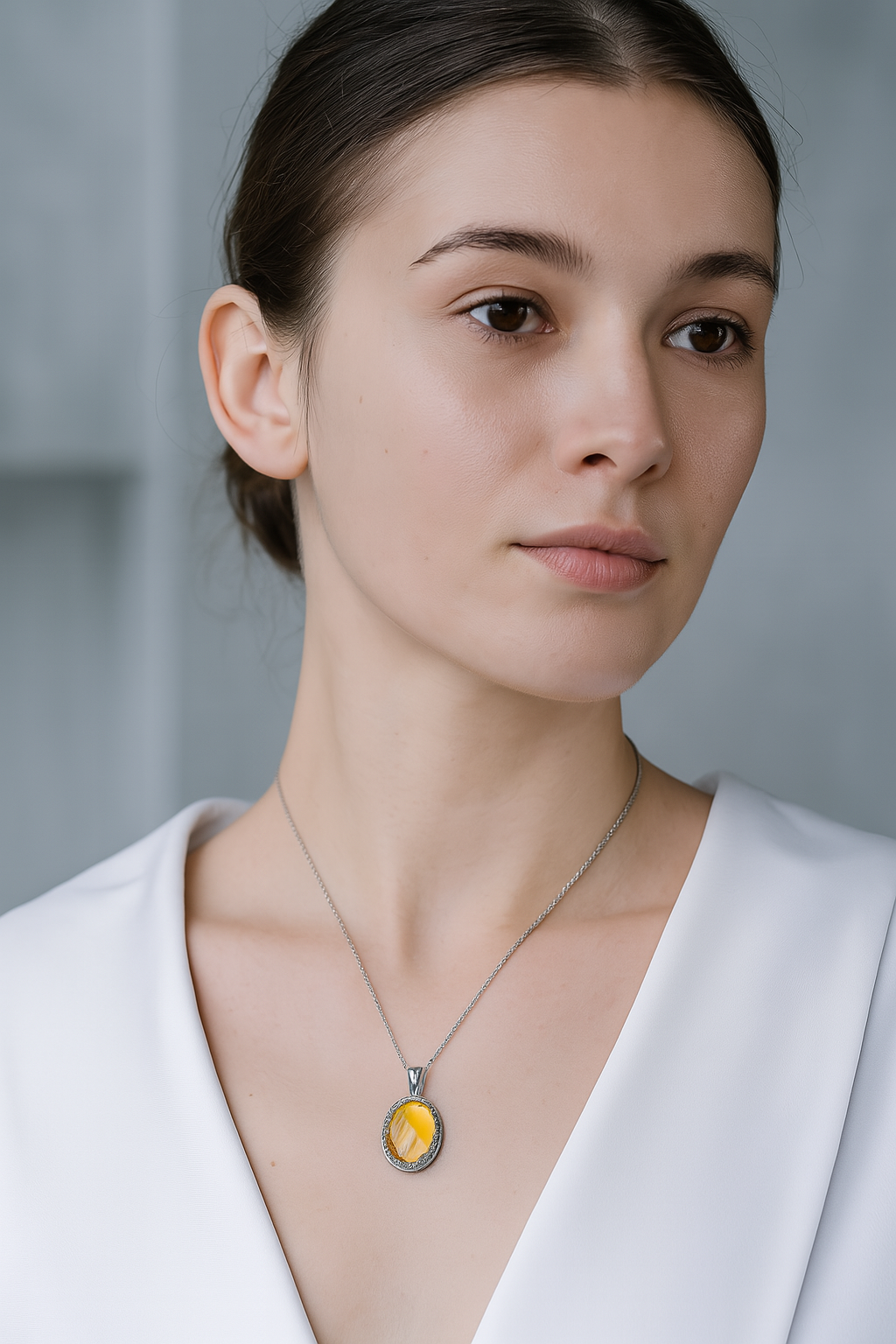 Pirtash kalitesiyle sitrin taşının sıcak, aydınlık ve zarif enerjisini boynunuzda taşıyın.