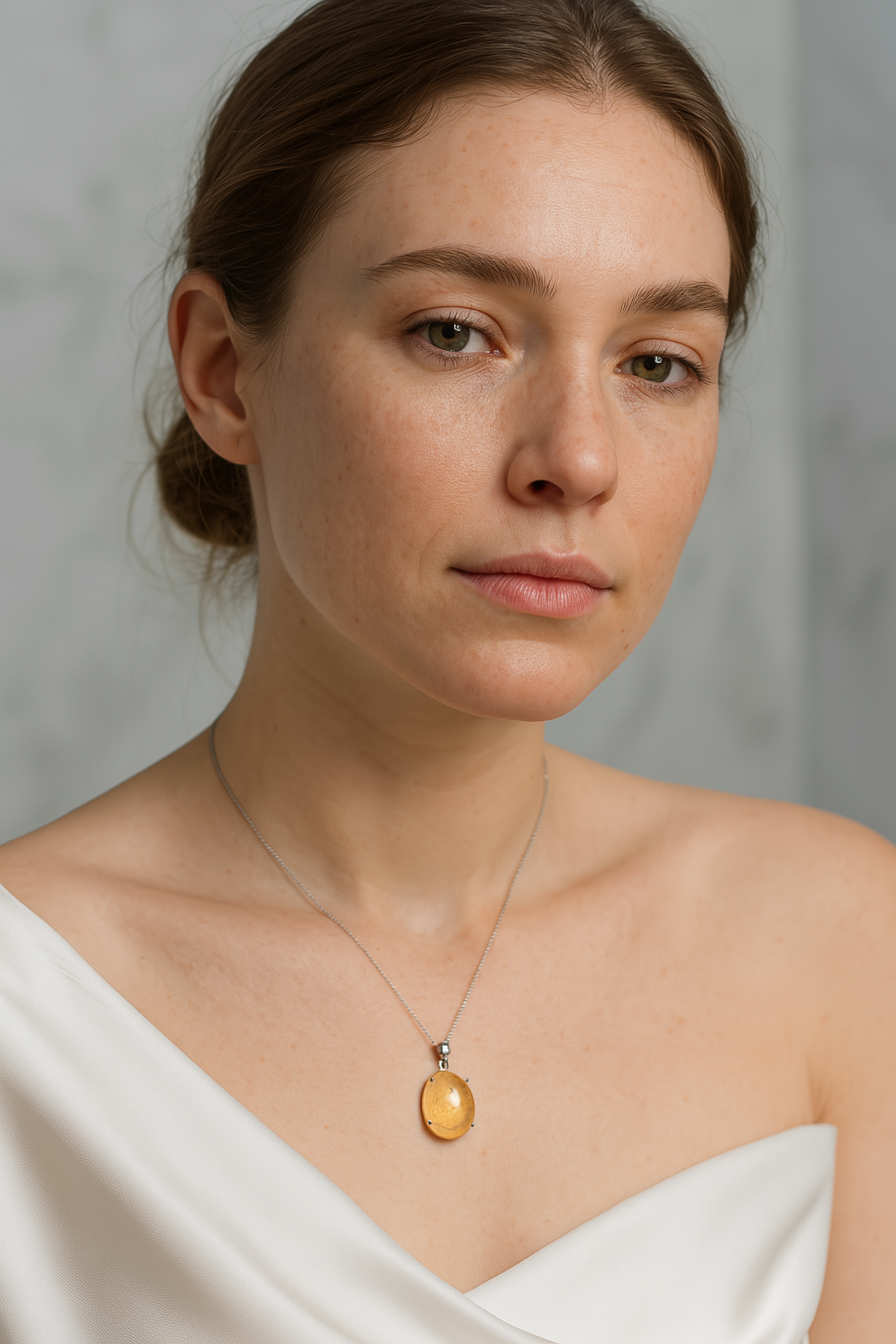 Pirtash kalitesiyle sitrin taşının sıcak, aydınlık ve zarif enerjisini boynunuzda taşıyın.