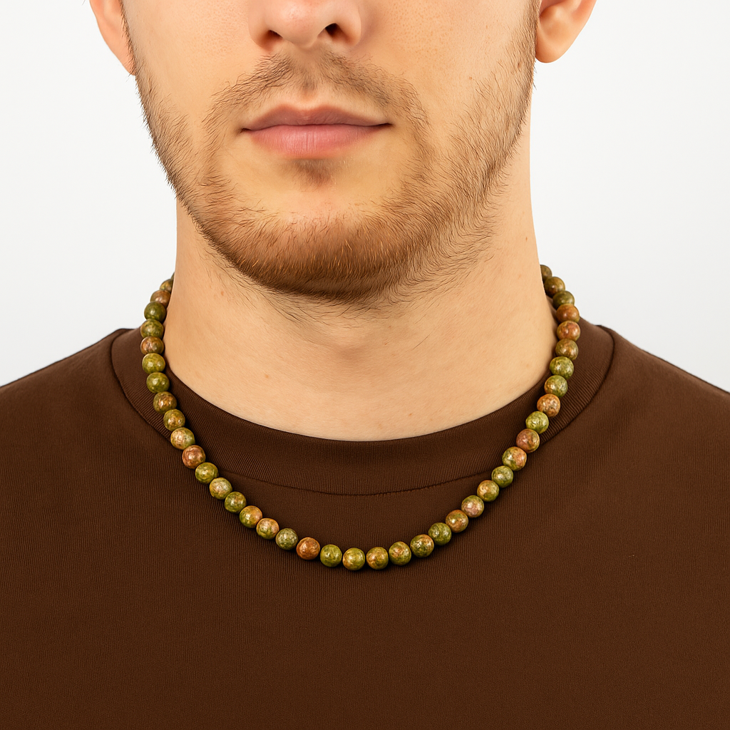 Pirtash kalitesiyle unakit taşının doğal renk dengesini ve özgün yapısını boynunuzda taşıyın.
