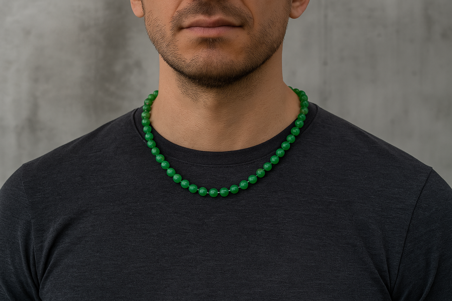 IGSL Sertifikalı Yeşil Aventurin 6 mm Düğümlü Doğal Taş Kolye