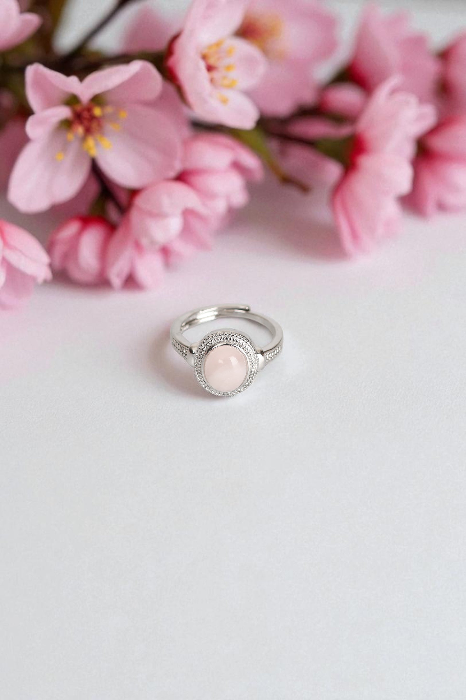 Sertifikalı Pembe Kuvars Doğal Taş Ayarlanabilir Yüzük | Pirtash | Özel Üretim