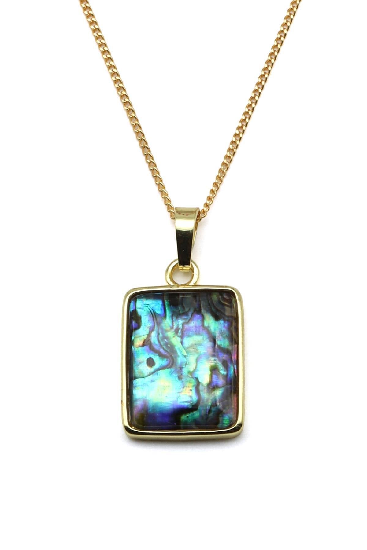 Abalon Sedef Doğal Taş Gold Renk Kolye